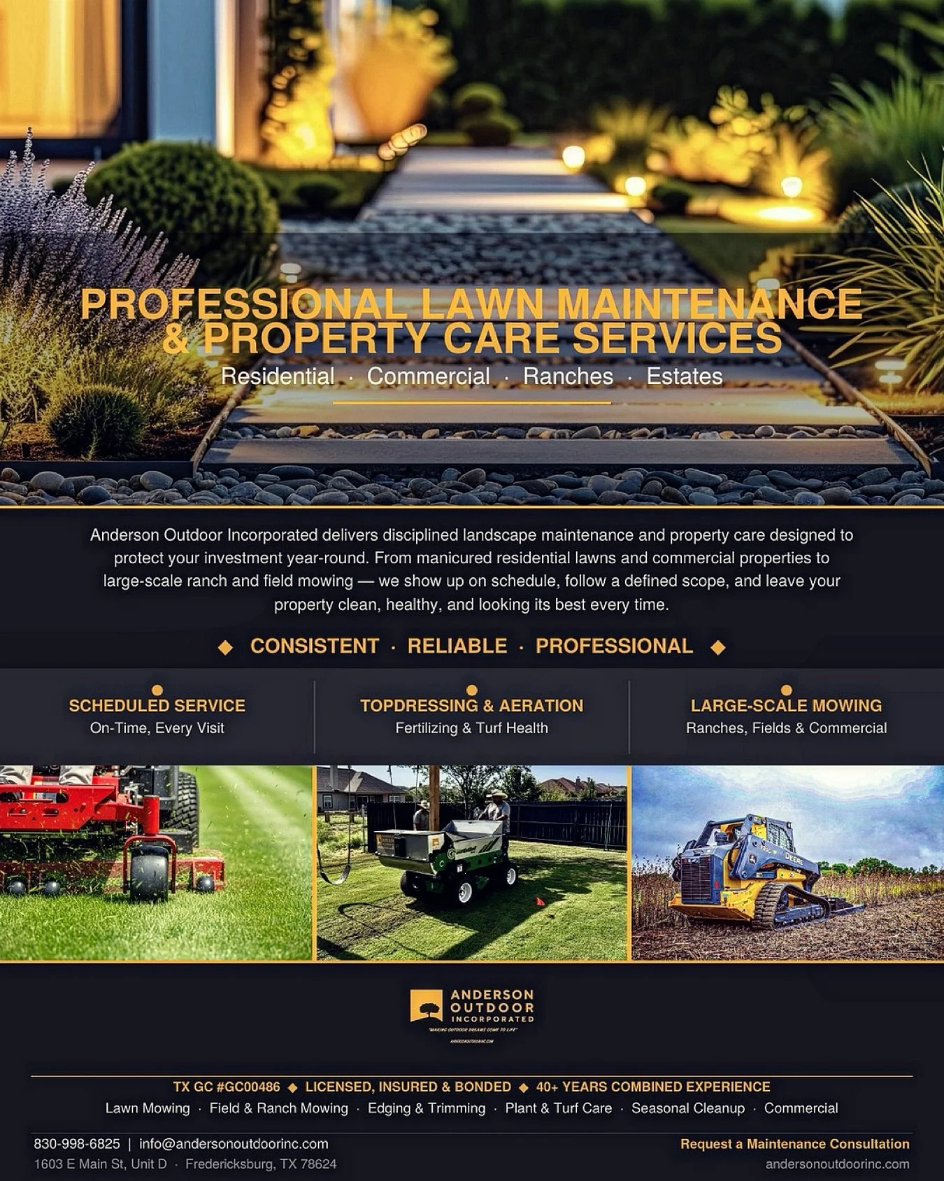 Every great outdoor project starts with a conversation. Whether you're envisioning a complete landscape transformation, a custom outdoor living space, or reliable property maintenance, Anderson Outdoor Incorporated is here to bring your vision to life.